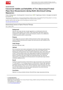 Purpose: To assess the concurrent validity and reliability of two-dimensional (2D) frontal plane measurement of the knee joint in multi-directional cutting maneuvers.