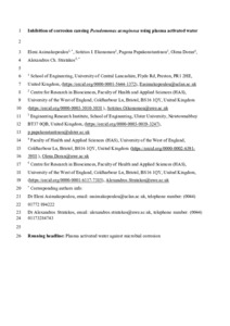 Asimakopoulou, Eleni orcid iconORCID: 0000-0001-5644-1372, Ekonomou, Sotirios, Papakonstantinou, Pagona, Doran, Olena and Stratakos, Alexandros (2022) Inhibition of corrosion causing Pseudomonas aeruginosa using plasma activated water. Journal Of Applied Microbiology, 132 (4). pp. 2781-2794. ISSN 1364-5072