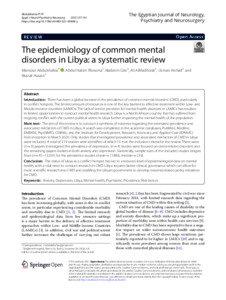 Abdulshafea, Mansour S issa, Rhouma, Abdul Hakim, Gire, Nadeem, Al Madhoob, Ali Abdulshaheed Ahmed Mansoor, Arshad, Usman and Husain, Nusrat (2021) The epidemiology of common mental disorders in Libya: a systematic review. The Egyptian Journal of Neurology, Psychiatry and Neurosurgery, 57 (1). p. 161.
