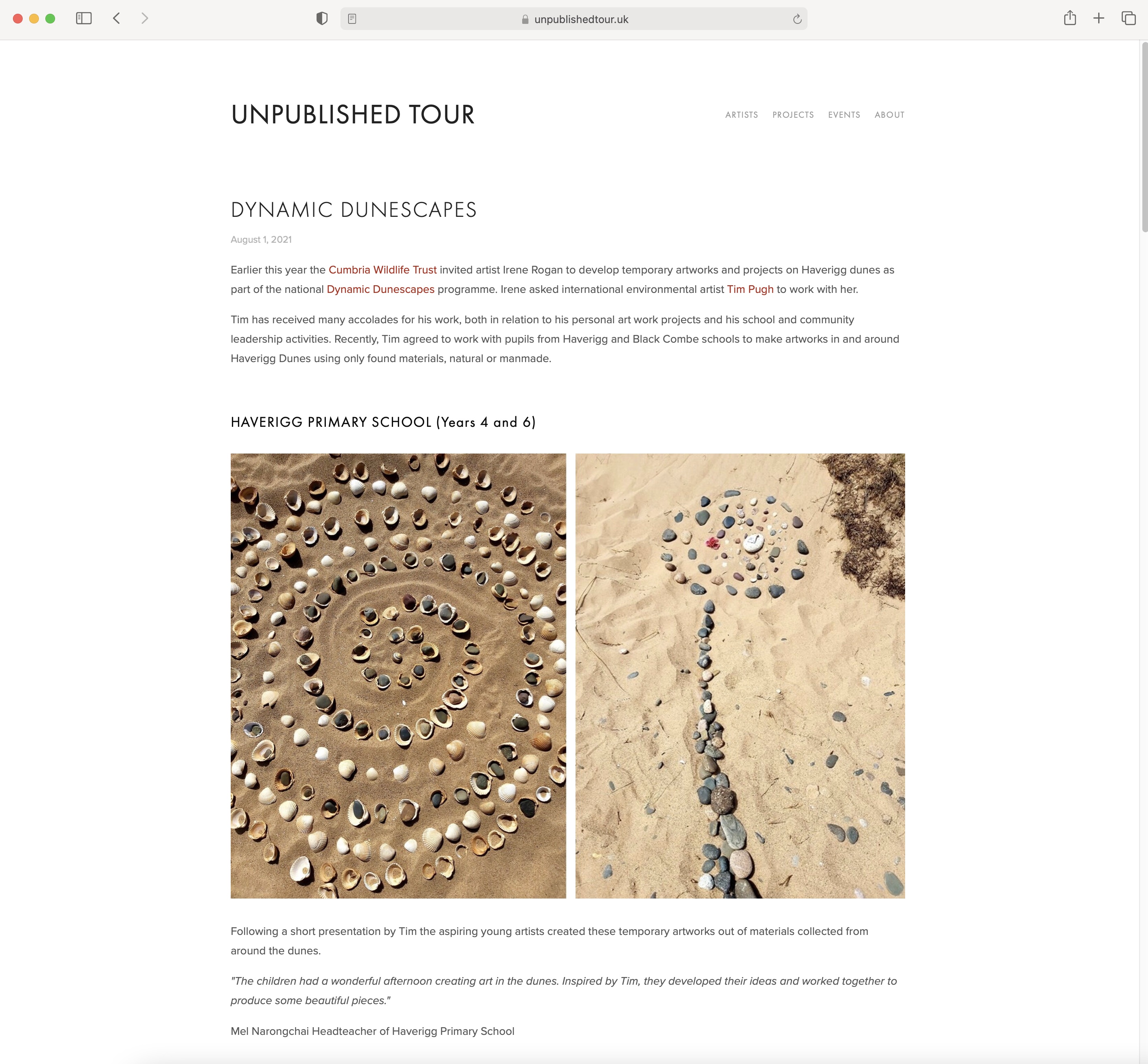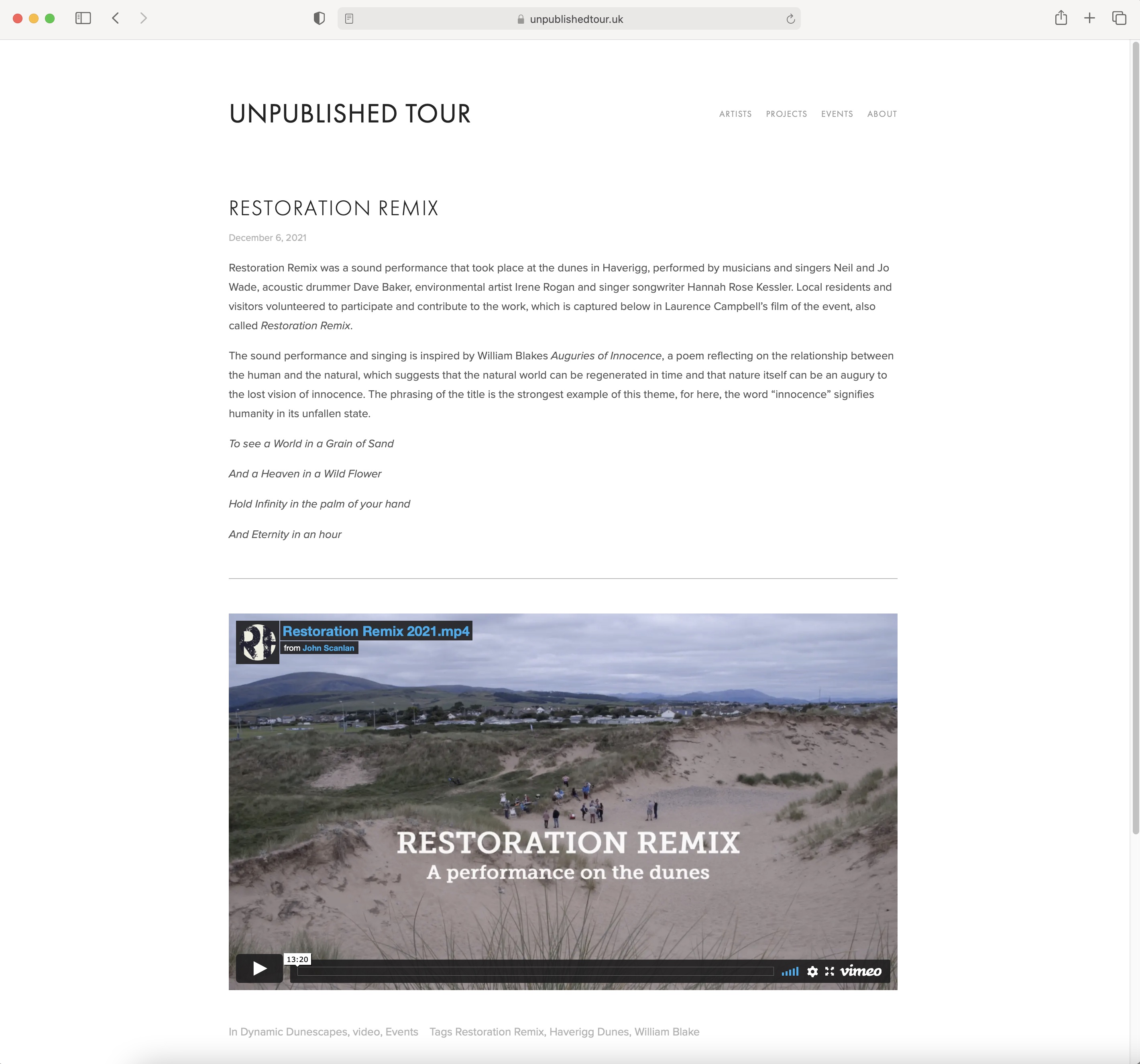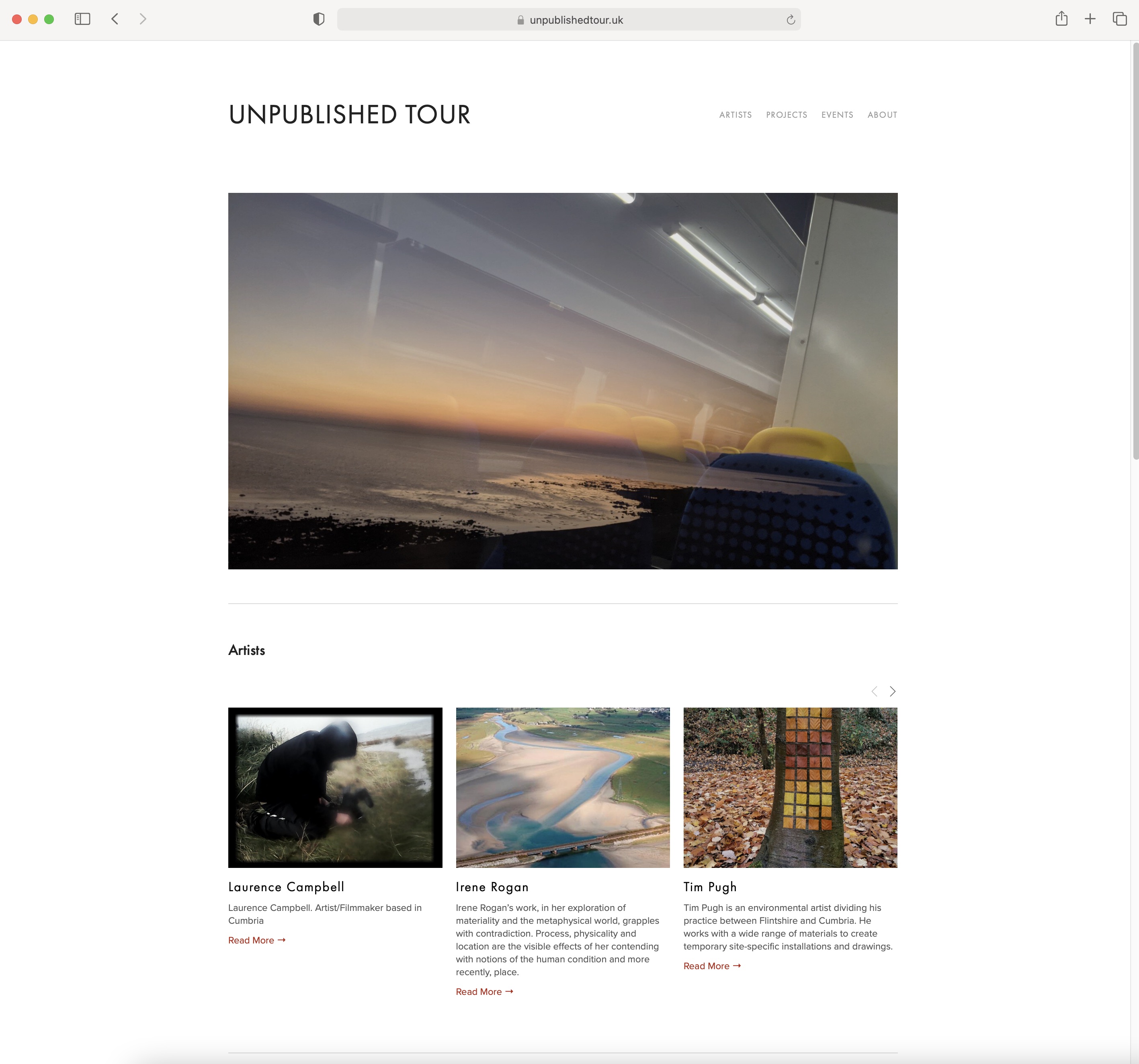 John Scanlan was commissioned by Irene Rogan to design a website for Unpublished Tour that could bring together a record of all the art work commissions, events and other projects that formed part of the programme and would contain a variety of materials - texts, photography, film and performance recordings.