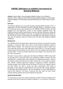 The research midwives at Lancashire Teaching Hospitals NHS Foundation Trust, in collaboration with the University of Central Lancashire (UCLan), conducted a series of 55 staff and service user interviews for the ASPIRE (Achieving Safe and Personalised maternity care In Response to Epidemics) COVID-19 study. We fully engaged with this opportunity to lead on this valuable qualitative study. We experienced great learning opportunities to develop interview techniques, along with the challenges of using technology in new ways to complete the interviews remotely. As the first UK site to open, we developed our knowledge and skills quickly, and found new ways of working to inform our future work and share with research midwife colleagues. We reflect upon this experience in this article, which is the second in the ASPIRE study series. © 2021, All4Holdings Ltd. All rights reserved.