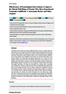 Effectiveness of Psychological Interventions to Improve the Mental Well-Being of Parents Who Have Experienced Traumatic Childbirth: A Systematic Review and Meta-Analysis.