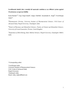 Levofloxacin loaded clove essential oil nanoscale emulsion as an efficient system against Pseudomonas aeruginosa biofilm.