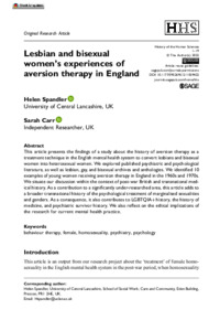 This article presents the findings of a study about the history of aversion therapy as a treatment technique in the English mental health system to convert lesbians and bisexual women into heterosexual women. We explored published psychiatric and psychological literature, as well as lesbian, gay, and bisexual archives and anthologies. We identified 10 examples of young women receiving aversion therapy in England in the 1960s and 1970s. We situate our discussion within the context of post-war British and transnational medical history. As a contribution to a significantly under-researched area, this article adds to a broader transnational history of the psychological treatment of marginalised sexualities and genders. As a consequence, it also contributes to LGBTQIA+ history, the history of medicine, and psychiatric survivor history. We also reflect on the ethical implications of the research for current mental health practice.
