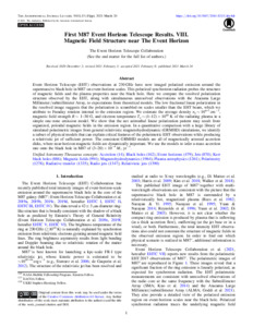 Akiyama, Kazunori, Algaba, Juan Carlos, Alberdi, Antxon, Alef, Walter, Anantua, Richard, Asada, Keiichi, Azulay, Rebecca, Baczko, Anne-Kathrin, Ball, David et al (2021) First M87 Event Horizon Telescope Results. VIII. Magnetic Field Structure near The Event Horizon. The Astrophysical Journal Letters, 910 (1). L13. ISSN 2041-8205
