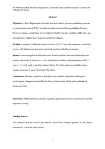 Emotion Regulation Mediates Posttraumatic Growth and Cluster B Personality Traits After Childhood Trauma.