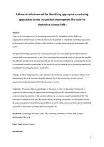 A theoretical framework for identifying appropriate marketing approaches across the product development life cycle for biomedical science SMEs.