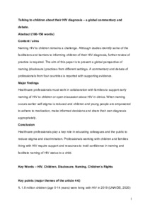 Talking to children about their HIV diagnosis: a discussion rooted in different global perspectives.