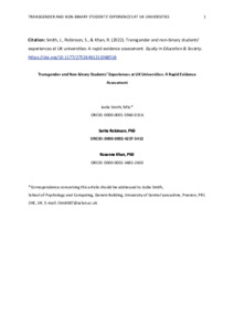 Transgender and Non-binary Students’ Experiences at UK Universities: A Rapid Evidence Assessment.
