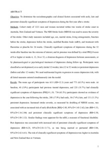 Measures Associated With Early, Late, and Persistent Clinically Significant Symptoms of Depression 1 Year After Stroke in the AFFINITY Trial.