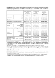 Objective:To determine the sociodemographic and clinical factors associated with early, late and persistent clinically significant symptoms of depression during the first year after a stroke.Methods:Cohort study of 1221 men and women recruited within two weeks of stroke onset in Australia, New Zealand and Vietnam. The NIH Stroke Scale (NIHSS) was used to assess the severity of the stroke. Other study measures included age, sex, marital status, living arrangements, function before the stroke, depression before the stroke, modified Rankin Scale (mRS), and treatment with fluoxetine or placebo for 26 weeks. Clinically significant symptoms of depression during the 52 weeks after baseline was the outcome of interest, and its presence was defined by a total PHQ-9 score of 9 or higher at weeks 4, 12, 26 or 52, a clinician diagnosis of depression between assessments, or by pharmacological or psychological treatment of depression during follow up. Participants were classified as not depressed, or as early (initial 12 weeks), late (12 to 52 weeks) or persistent depression (before and after 12 weeks). We used multinomial logistic regression to assess depression risk, with all listed measures entered simultaneously into the model.Results:The mean age of participants was 63.8 (SD=12.3) years and 775 (63.5%) were male. At baseline, 48 (3.9%) participants had previous treated depression, and 228 (18.7%) had clinically significant symptoms of depression (PHQ-9 ≥ 9). 734 (63.3%) participants showed no evidence of depression in the year following the stroke, 208 (17.9%) had early, 86 (7.4%) late, and 131 (11.3%) persistent depression. Increased stroke severity, as measured by doubling of NIHSS scores, was associated with an increased risk of early (Risk Ratio [RR]=2.08, 95%CI=1.65-2.62), late (RR=1.53, 95%CI=1.14-2.06) and persistent clinically significant symptoms of depression (RR=2.50, 95%CI=1.89-3.32). Similar findings were apparent for the mRS, a measure of functional disability. Past depression was associated with increased risk of persistent clinically significant symptoms of depression (RR=6.28, 95%CI=2.88-13.71), as was being married or partnered (RR=3.94, 95%CI=2.42-6.41). The risk of clinically significant symptoms of depression was higher in Australia and New Zealand than in Vietnam.Conclusion:The severity of neurological and functional deficits increases the risk of post-stroke clinically significant symptoms of depression early and persistently. Depression before stroke, personal relationships and cultural context contribute to mediate depression risk. Interventions that minimise the severity of neurological and functional deficits should decrease the risk of post-stroke clinically significant symptoms of depression.