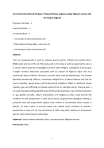 A feminist-intersectional analysis of sexual violence experienced by Nigerian women who are living in England.