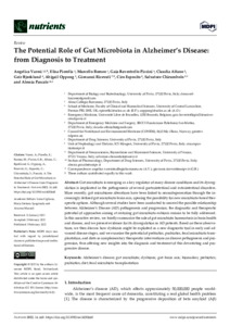 Varesi, Angelica, Pierella, Elisa, Romeo, Marcello, Piccini, Gaia Bavestrello, Alfano, Claudia, Bjørklund, Geir, Oppong, Abigail, Ricevuti, Giovanni, Esposito, Ciro et al (2022) The Potential Role of Gut Microbiota in Alzheimer’s Disease: from Diagnosis to Treatment. Nutrients, 14 (3). e668.