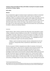 Listening, Acting and Changing UK Policy with Children: learning from European examples and theories of children’s agency.