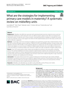 Batinelli, Laura, Thaels, Ellen, Leister, Nathalie, McCourt, Christine, Bonciani, Manila and Rocca-Ihenacho, Lucia (2022) What are the strategies for implementing primary care models in maternity? A systematic review on midwifery units. BMC Pregnancy and Childbirth, 22 (1). p. 123.
