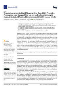 Tetrahydrocurcumin Lipid Nanoparticle Based Gel Promotes Penetration into Deeper Skin Layers and Alleviates Atopic Dermatitis in 2,4-Dinitrochlorobenzene (DNCB) Mouse Model.