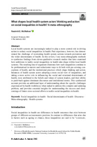 What shapes local health system actors' thinking and action on social inequalities in health? A meta-ethnography.