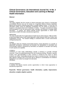 Purpose – This paper aims to suggest that the concept of clinical governance goes beyond a bureaucratic accountability structure and can be viewed as a negotiated balance between imperfectly aligned and sometimes conflicting goals within a complex adaptive system. On this view, the information system cannot be separated conceptually from the system of governance it supports or the people whose work it facilitates or hinders.