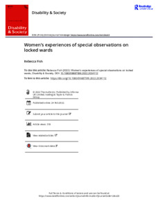 Fish, Rebecca (2022) Women’s experiences of special observations on locked wards. Disability and Society, 37 (3). pp. 528-533. ISSN 0968-7599