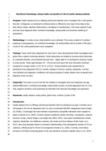 An online survey using Qualtrics was conducted. The survey consists of 4 sections exploring (1) demographics, (2) nutritional knowledge, (3) eating habits and (4) quality of life (QoL). A total of 162 valid questionnaires were completed.