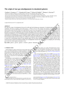 Casanueva, Catalina I, Lagos, Claudia del P, Padilla, Nelson D and Davison, Thomas (2022) The origin of star-gas misalignments in simulated galaxies. Monthly Notices of the Royal Astronomical Society . ISSN 0035-8711