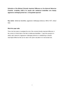 The MCID is essential in interpreting the results from intervention studies. The present work was undertaken as part of a wider programme on the development and testing of a psychosocial intervention for aggressive challenging behaviour, and it is of interest to researchers in justifying how they choose and determine the MCID on the outcome of interest.