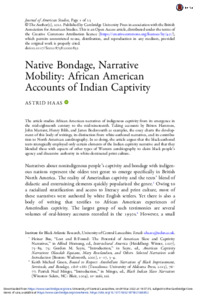 Native Bondage, Narrative Mobility: African American Accounts of Indian Captivity.
