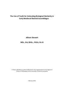 Stewart, Allison (2021) The Use of Teeth for Estimating Biological Similarity in Early Medieval Skeletal Assemblages. Doctoral thesis, University of Central Lancashire.