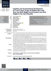 Cognitive and Socioemotional Development at 5 and 9 Years of Age of Children Born with Very Low Birth Weight and Extremely Low Birth Weight in the Czech Republic.