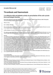 Kriek, Neline, Nock, Sophie, Sage, Tanya, Khalifa, Badrija, Bye, Alexander, Mitchell, Joanne L, Thomson, Steven, McLaughlin, Mark G, Jones, Sarah et al (2022) Cucurbitacins elicit anti-platelet activity via perturbation of the actin cytoskeleton and integrin function. Thrombosis and Haemostasis . ISSN 0340-6245