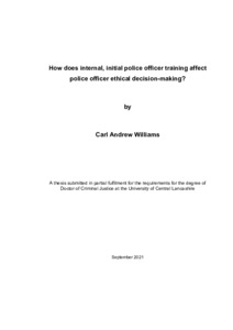 Williams, Carl Andrew (2021) How does internal, initial police officer training affect police officer ethical decision-making? Doctoral thesis, University of Central Lancashire.