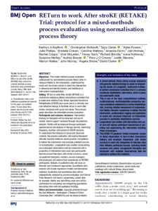 RETurn to work After stroKE (RETAKE) Trial: protocol for a mixed-methods process evaluation using normalisation process theory.