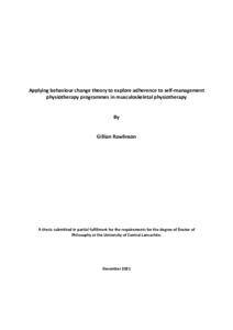 Rawlinson, Gillian (2021) Applying behaviour change theory to explore adherence to self-management physiotherapy programmes in musculoskeletal physiotherapy. Doctoral thesis, University of Central Lancashire.