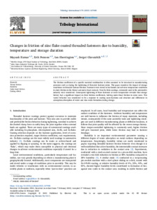 Changes in friction of zinc flake coated threaded fasteners due to humidity, temperature and storage duration.