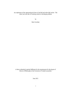 Crowther, Matthew (2021) An exploration of the epistemological basis of red ball and white ball cricket - The what, how and why of coaching cricket to developing athletes. Doctoral thesis, University of Central Lancashire.