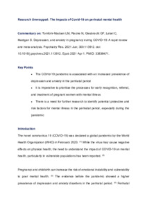 The impacts of Covid-19 on perinatal mental health- Part 1.