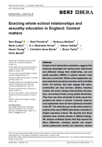 Enacting whole‐school relationships and sexuality education in England: Context matters.