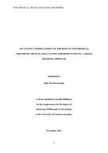 Theodoropoulou, Olga (2021) Advancing Understanding of the Role of Non-Physical Childhood Abuse in Adult Eating Disorder Patients: A Mixed Methods Approach. Doctoral thesis, University of Central Lancashire.