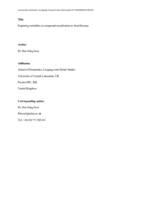 In Korean noun-noun compounds, the lenis onset consonant in the second noun is often realized as a tense consonant. Although extensive work has been carried out to clarify its causes and relevant phonological processes, this tensification is deemed not entirely predictable. This paper presents a speech production experiment that confirms the existing findings that the variability in tensification is predictable to a certain extent. The experimental results also showed that the relationship between the predictors and the variability is not linear and that tensification mirrors the cognitively determined boundary strength. Native Korean speakers calibrate the boundary strength by incorporating complex information, such as the word’s length, segment type, frequency, and plausibility of the compound. While a “tight” boundary led to high tensification probability, it was not affected by speaking-rate variation. Furthermore, the perceived compound’s plausibility directly affected the duration of the tensified consonant. Importantly, the findings suggest that speakers’ calibration of the boundary strength is fluid and changeable over time and it affects both phonological and phonetic outputs. Finally, variability in data was reduced for the experimental conditions leading to either extremely high or low tensification probability, and there seemed to be lexicalized exceptions to the general trends.