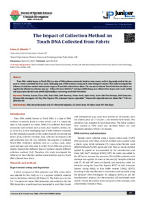 Trace DNA, widely known as Touch DNA, is a type of DNA evidence commonly found at crime scenes, and it is frequently used to link suspects to crimes committed but it is a more challenging type of DNA evidence compared to other biological samples. This study investigated the influence of collection method and extraction type on Touch DNA collected from fabric. The amount of collected Touch DNA from the fabric was significantly affected by collection type (p < 0.05), with Scene Safe Fast™ minitape (K545) being more efficient than Copan cotton swab (150C) and Copan nylon flocked swab (4N6FLOQSwabs®) on recovering touch DNA from fabric.