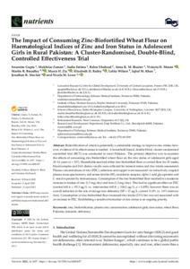 The Impact of Consuming Zinc-Biofortified Wheat Flour on Haematological Indices of Zinc and Iron Status in Adolescent Girls in Rural Pakistan: A Cluster-Randomised, Double-Blind, Controlled Effectiveness Trial.