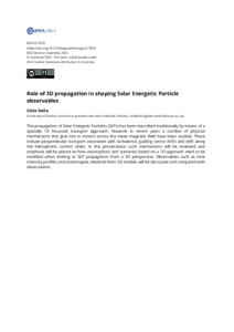 Role of 3D propagation in shaping Solar Energetic Particle observables.