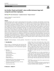 An AI ethics ‘David and Goliath’: value conficts between large tech companies and their employees.