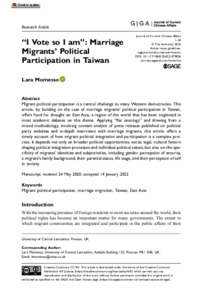 “I Vote so I am”: Marriage Migrants’ Political Participation in Taiwan.