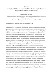 The police service, as well as Local Authorities, are under increasing pressure to prioritise, prevent, and disrupt child abuse, and which has arguably been driven by a number of high-profile UK-based national case reviews and inquiries that have subsequently highlighted collective failures. There is thus a call for empirical study to inform and enhance practice, and to meet the priorities outlined within the Home Office’s child protection agenda. This special issue brings together emerging research and developments on investigating child abuse and safeguarding children, with an emphasis on informing policing and investigative practice. A collection of work is presented that draws on a range of unique methodologies and samples to engage readers and offer thought-provoking implications for development.