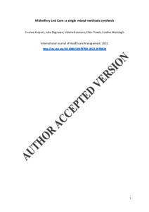 Kuipers, Yvonne, Degraeve, Julie, Bosmans, Valerie, Thaels, Ellen and Mestdagh, Eveline (2022) Midwifery-led care: A single mixed-methods synthesis. International Journal of Healthcare Management . pp. 1-16. ISSN 2047-9700