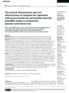 The clinical effectiveness and cost effectiveness of clozapine for inpatients with severe borderline personality disorder (CALMED study): a randomised placebo-controlled trial.