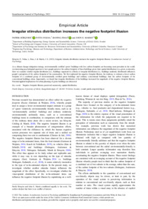 As a climate change mitigation strategy, environmentally certified ‘green’ buildings with low carbon footprints are becoming more prevalent in the world. An interesting psychological question is how people perceive the carbon footprint of these buildings given their spatial distributions in a given community. Here we examine whether regular distribution (i.e., buildings organized in a block) or irregular distribution (i.e., buildings randomly distributed) influences people's perception of the carbon footprint of the communities. We first replicated the negative footprint illusion, the tendency to estimate a lower carbon footprint of a combined group of environmentally certified green buildings and ordinary conventional buildings, than the carbon footprint of the conventional buildings alone. Importantly, we found that irregular distribution of the buildings increased the magnitude of the negative footprint illusion. Potential applied implications for urban planning of green buildings are discussed.