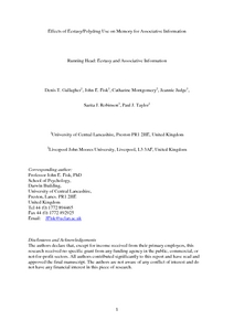 Gallagher, Dennis T., Fisk, John orcid iconORCID: 0000-0002-2981-0870, Montgomery, Catharine, Judge, Jeannie orcid iconORCID: 0000-0002-4029-6876, Robinson, Sarita Jane orcid iconORCID: 0000-0002-4237-5412 and Taylor, Paul John orcid iconORCID: 0000-0002-9999-8397 (2012) Effects of ecstasy/polydrug use on memory for associative information. Psychopharmacology, 222 (4). pp. 579-591. ISSN 0033-3158