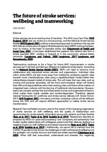 The future of stroke services: wellbeing and teamworking.